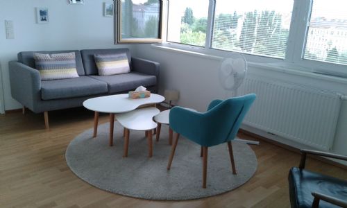 modern eingerichteter Praxisraum im 7. Liftstock mit wunderbarem Blick auf den Donaukanal